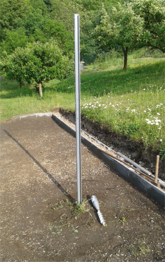 Tak jsem zavrtal zemní vruty. Do každého zemního vrutu příjde upevnit vinohradnický sloupek, který projde mírnou úpravou. Stihl jsem pouze 4, víc ne. Mám jich zatím koupených celkem 6.